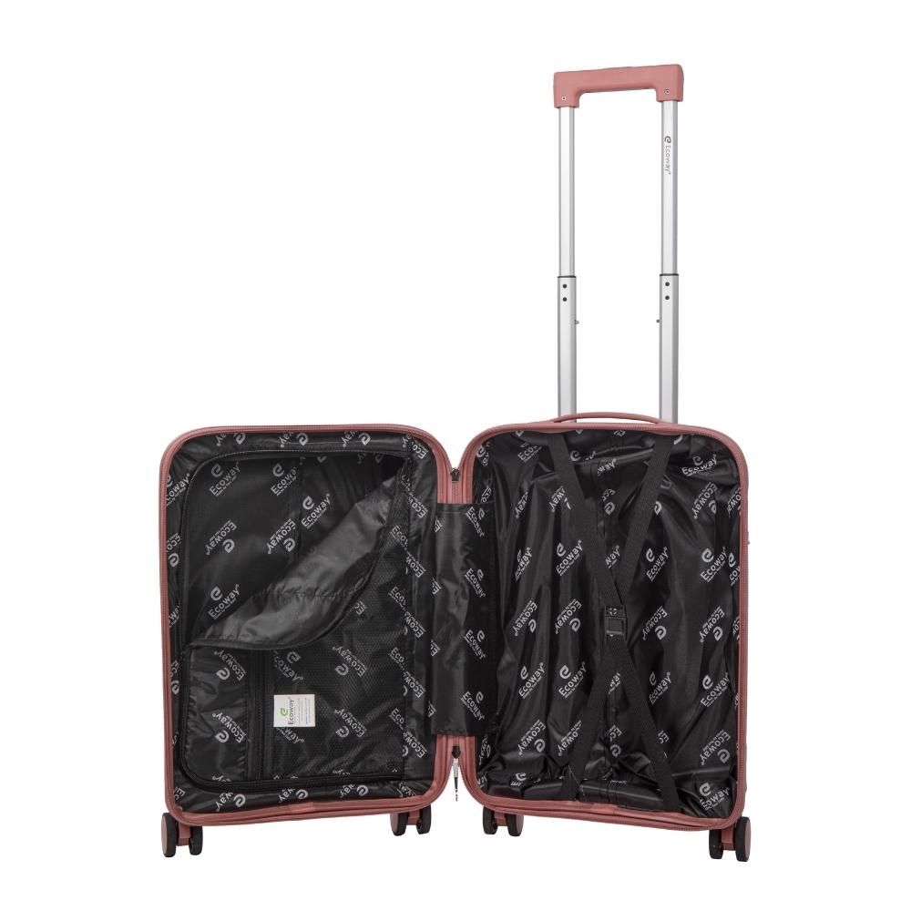 Vali Ecoway E612 20 Inch phiên bản Rosa Gold không chỉ là một phụ kiện chứa đồ, mà còn là tuyên ngôn thời trang đầy nữ tính cho những chuyến đi. Điểm nhấn giúp mẫu thiết kế này chinh phục phái đẹp nằm ở lớp vỏ được đúc từ nhựa PP (Polypropylene) cao cấp. Đây là chất liệu siêu đàn hồi với khả năng chống bể vỡ ưu việt, giúp chiếc vali phục hồi hình dáng nhanh chóng ngay cả khi chịu va đập mạnh tại sân bay.