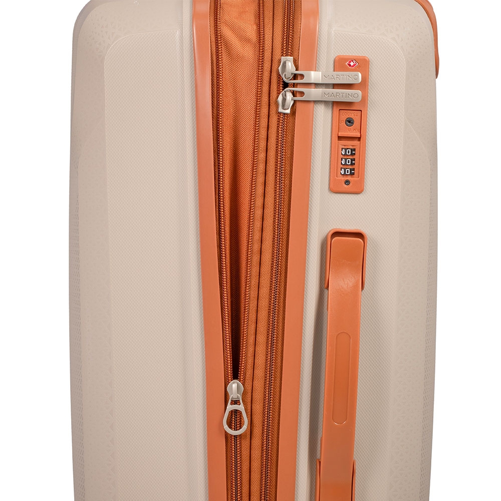 Dù thuộc phân khúc size Cabin nhỏ gọn, Vali Martino M252 28 Inch lại sở hữu một "vũ khí bí mật" là dây khóa nới rộng, giúp tăng thể tích chứa đồ thêm đến 25% khi cần thiết.