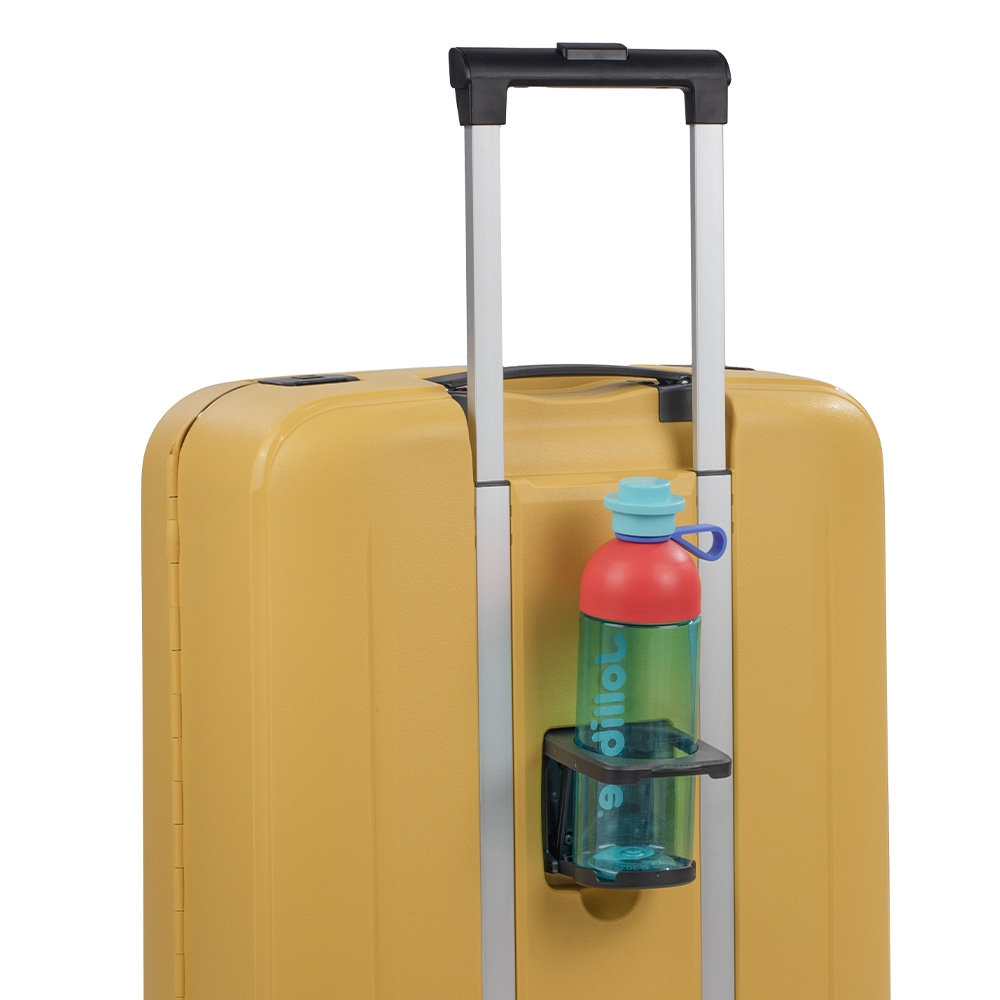 Màu vàng sáng rất đẹp nhưng dễ lộ vết bẩn sau quá trình ký gửi, hãy dùng khăn mềm ẩm lau sạch bề mặt nhựa PP và khung khóa sập ngay sau mỗi chuyến đi để vali luôn tươi mới.